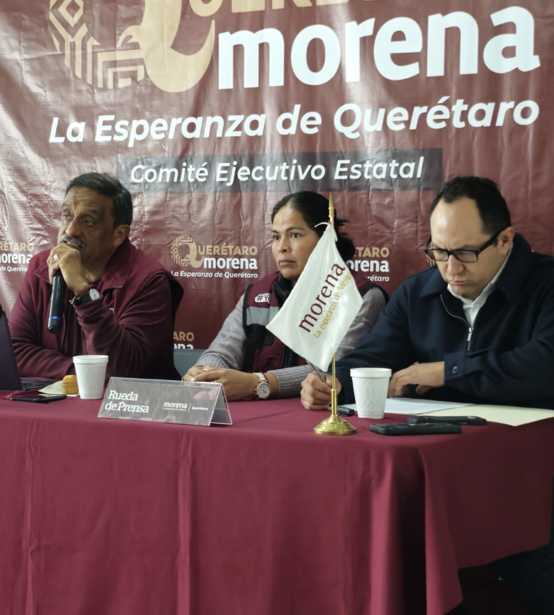 El secretario general de Morena en Querétaro, Alejandro Pérez Ibarra, y el secretario de Organización del partido en la entidad, Ángel Balderas Puga, se pronunciaron sobre las declaraciones del diputado local del Partido Acción Nacional (PAN), Guillermo Vega Guerrero, quien planteó la posibilidad de incurrir en un desacato legal ante la reforma judicial.