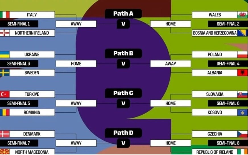 En cuanto al repechaje europeo, la FIFA estableció cuatro grupos denominados A, B, C y D. En el Play-off A, competirán Italia, Irlanda del Norte, Gales y Bosnia-Herzegovina. Los ganadores de los duelos iniciales avanzarán a una final regional para definir al clasificado de este sector.