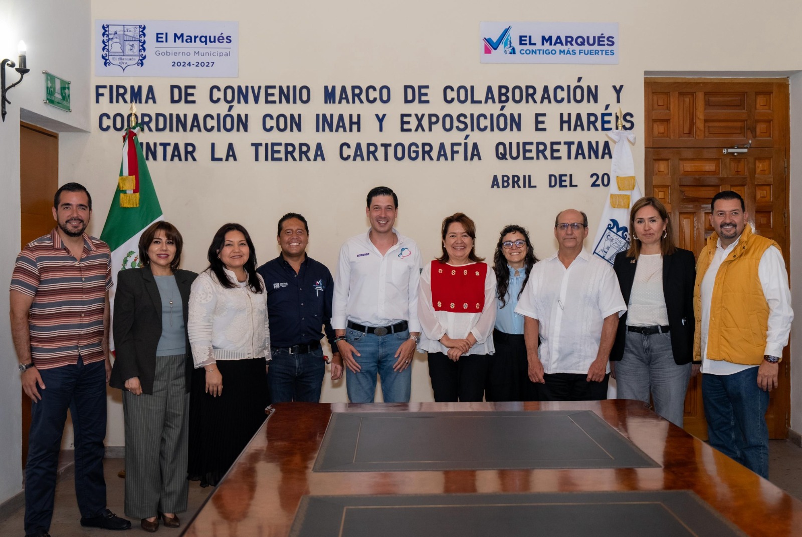 El presidente municipal de El Marqués, Rodrigo Monsalvo Castelán encabezó la firma del Convenio Marco de Colaboración y Coordinación con el Instituto Nacional de Antropología e Historia (INAH), acompañado por la titular del INAH Querétaro, Rosa Estela Reyes García, en un acto realizado en el Centro Municipal en Jesús María.