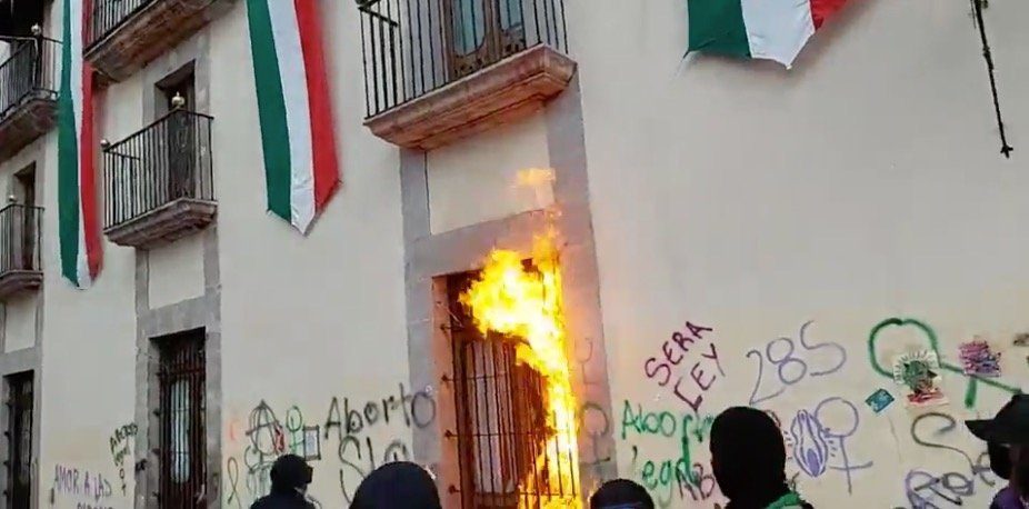 Así ardió una de las oficinas del palacio de gobierno durante la manifestación de activistas a favor de la legalización del aborto y del derecho de las mujeres a decidir sobre sus cuerpos. Las autoridades estatales analizan proceder en contra de las responsables.