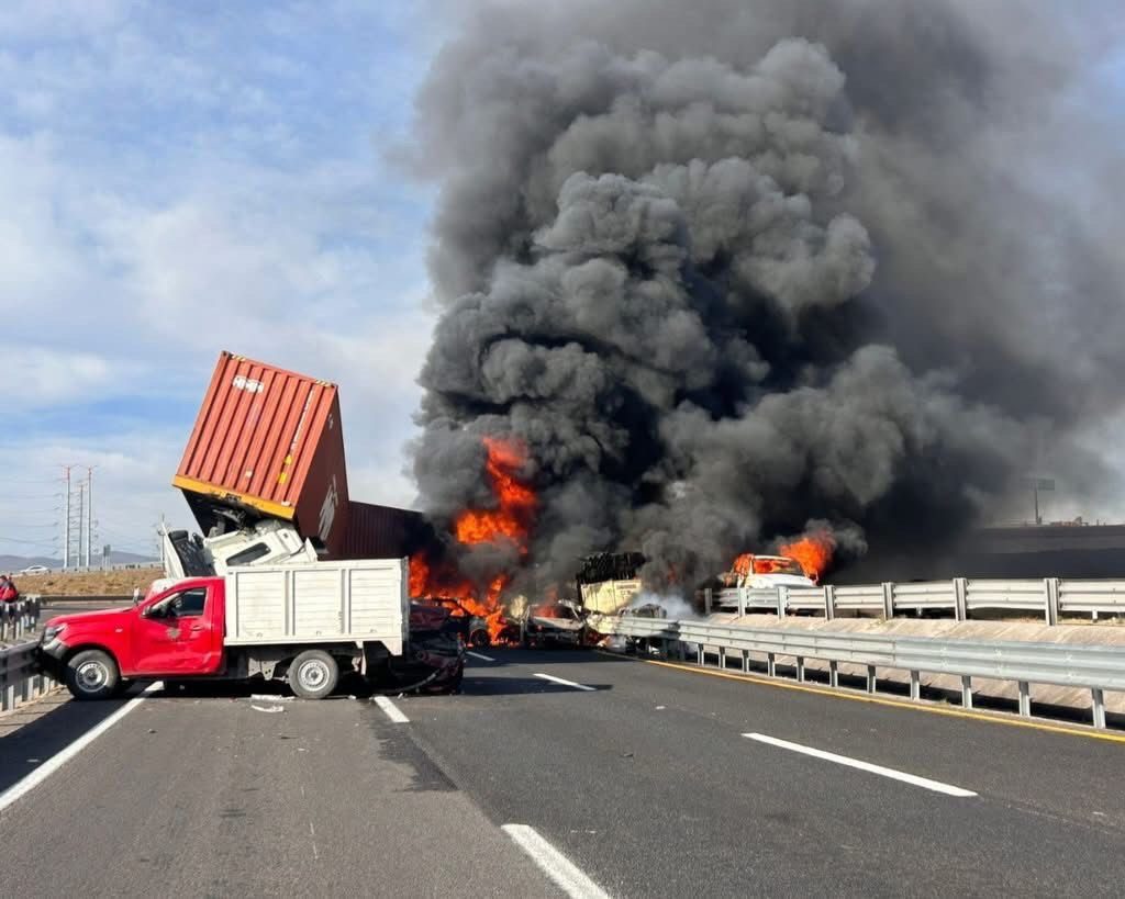El accidente ocurrió a la altura del Parque Industrial Querétaro, en donde al menos dos unidades de carga, así como siete vehículos particulares colisionaron, en dirección a la capital queretana.