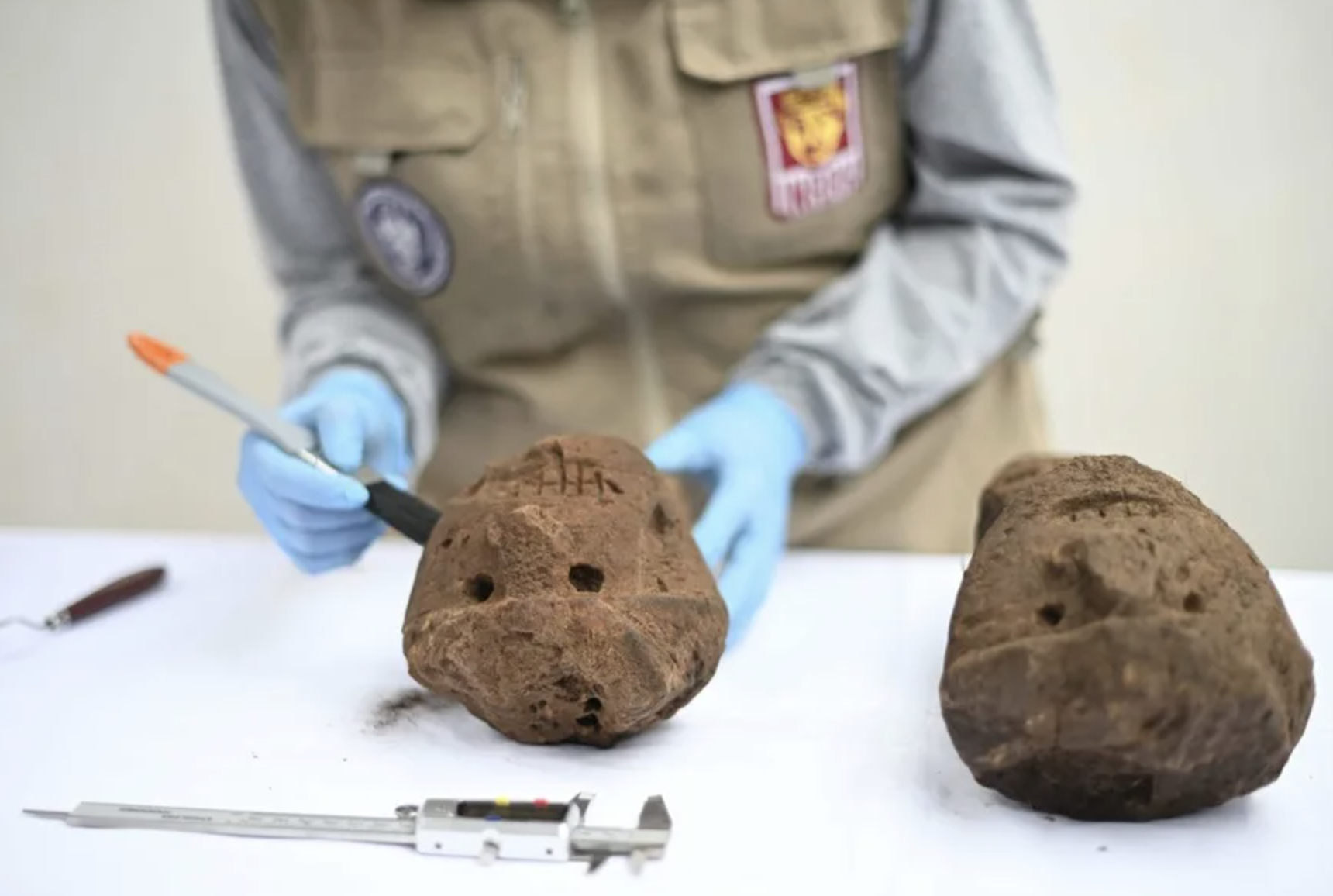La gran sorpresa llegó cuando en uno de los edificios se encontraron con dos “cabezas clavas”, dos esculturas de cabezas talladas en roca con un soporte para insertarse a modo de clavos en los muros de piedra, con una función presumiblemente ornamental.