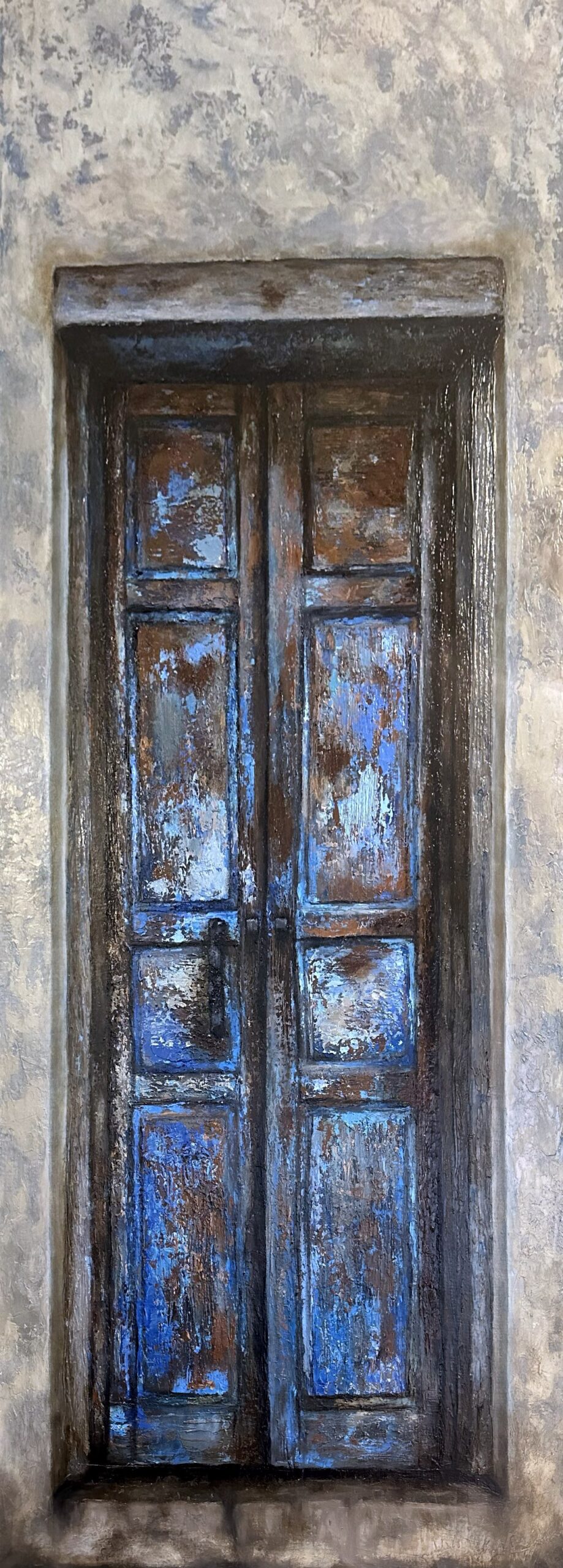 “Historias” son pinturas inspiradas en puertas antiguas de pueblos queretanos, las cuales son testigos del paso del tiempo y de quienes han vivido detrás de ellas.