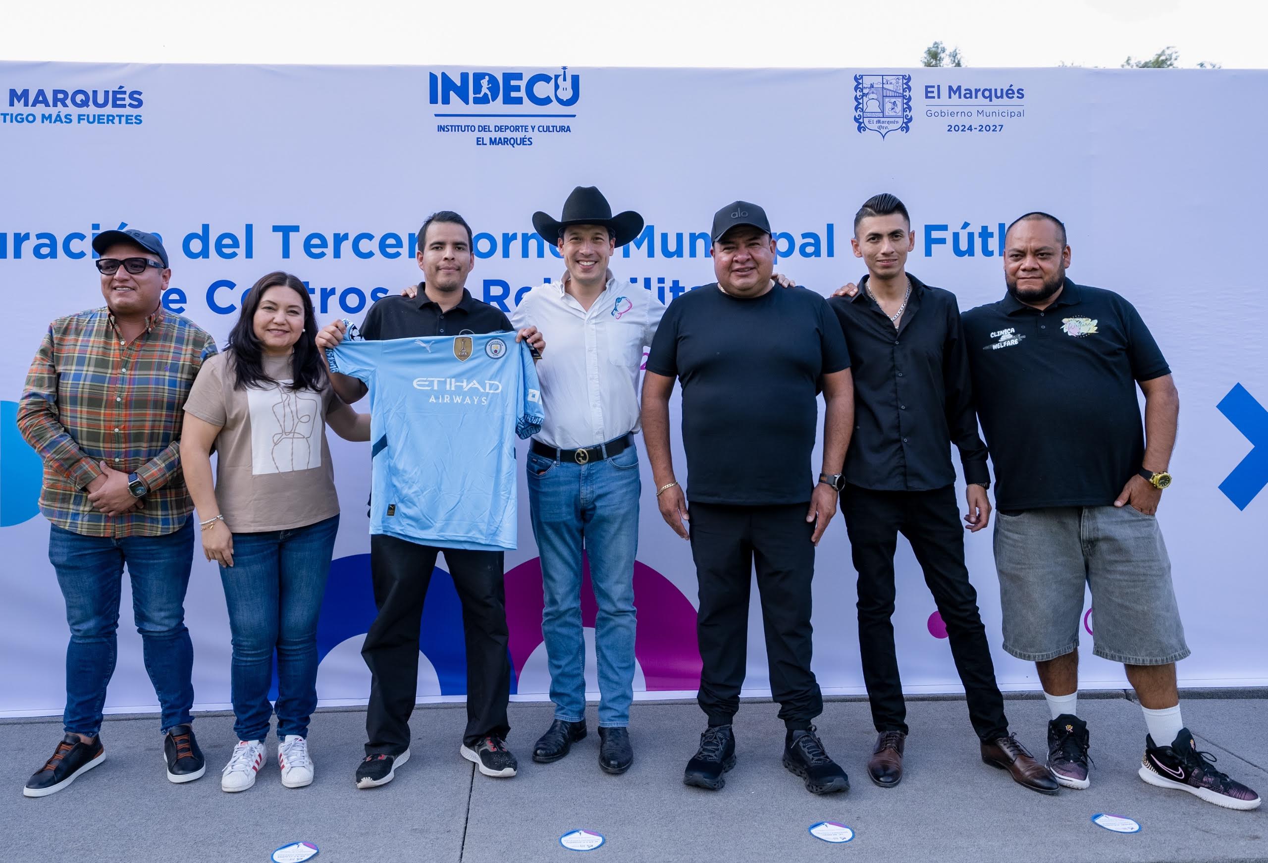 El presidente municipal de El Marqués, Rodrigo Monsalvo Castelán, encabezó la inauguración del Tercer Torneo Municipal de Fútbol de Centros de Rehabilitación, realizada en la Unidad Deportiva de La Cañada, con el objetivo de fomentar el deporte como una herramienta clave en los procesos de recuperación e integración social.