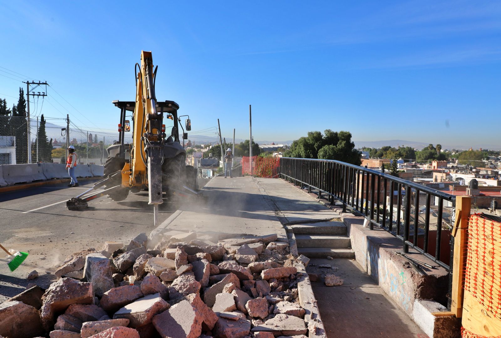 Desde este lunes 26 de enero, ha comenzado a trabajar la maquinaria para demoler el puente que se encuentra sobre las vías del tren, a la altura de El Cerrito, en Corregidora Norte; como parte de los trabajos del tren México Querétaro.