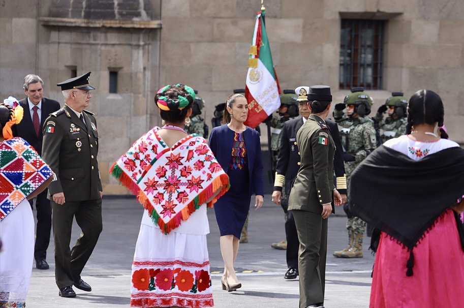 “Sin embargo, en lugar de comprenderlo, decidieron aplastarlo (…) la colonia no sólo sometió los cuerpos, sino también quiso someter las mentes que perduraron por siglos. Se buscó avergonzarnos de nuestro origen indígena como nación. A pesar que ser indígena, lo decían ellos, era sinónimo de atraso, de ignorancia, de barbaria”, dijo frente a Palacio Nacional.