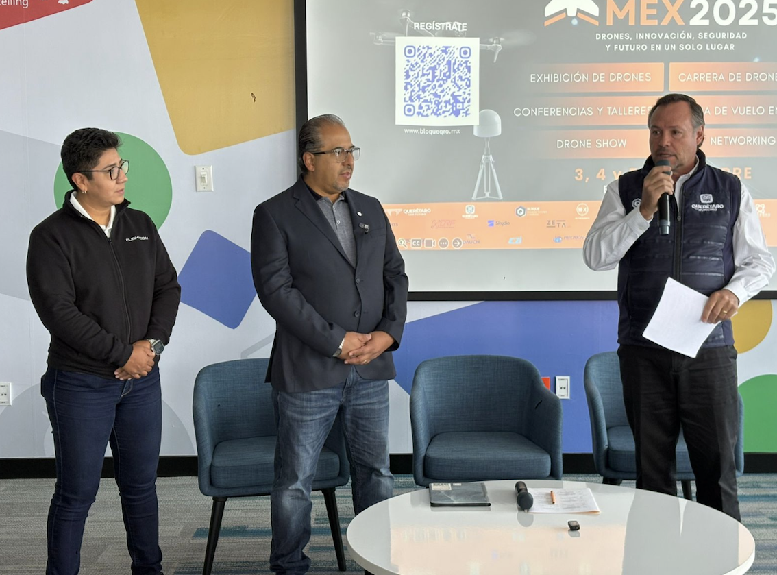 El municipio de Querétaro invita a la ciudadanía en general a que asistan este 3, 4 y 5 de octubre de 2025, al congreso DroneMex 2025, evento gratuito que se llevará por primera vez en la capital, en las instalaciones del Centro de Innovación y Tecnología Creativa BLOQUE.