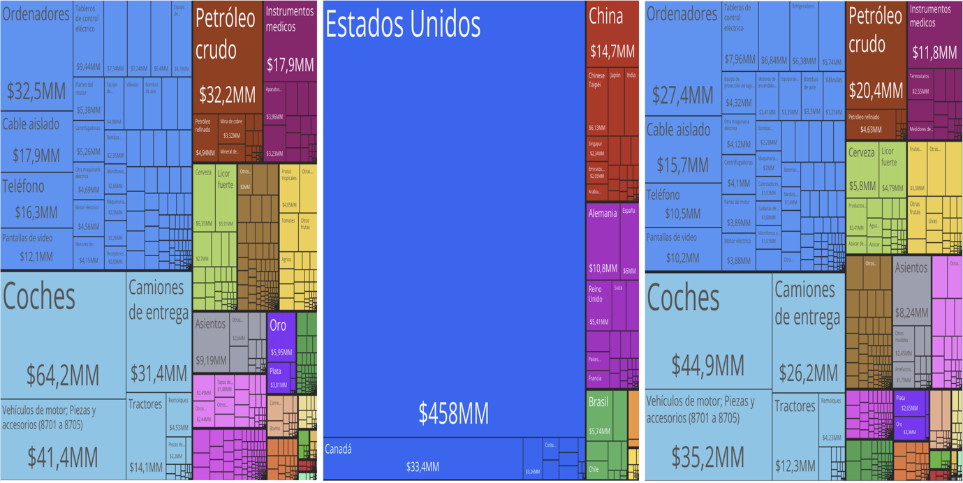 Las grandes industrias financieras y de seguros de México apoyan en gran medida a las empresas manufactureras y logísticas que exportan en su inmensa mayoría a Estados Unidos; sin los mercados estadounidenses, la demanda de financiación, cobertura de seguros y servicios financieros relacionados caería en picada. Los servicios profesionales y de consultoría prosperan en gran medida porque las empresas multinacionales –principalmente estadounidenses– operan ampliamente en México, creando una demanda constante de servicios jurídicos, contables, de ingeniería y de asesoramiento empresarial. El sector inmobiliario, que incluye propiedades comerciales, almacenes, parques industriales y oficinas, existe en gran medida para dar cabida a empresas orientadas a la exportación y a infraestructuras logísticas vinculadas directamente al comercio transfronterizo.
