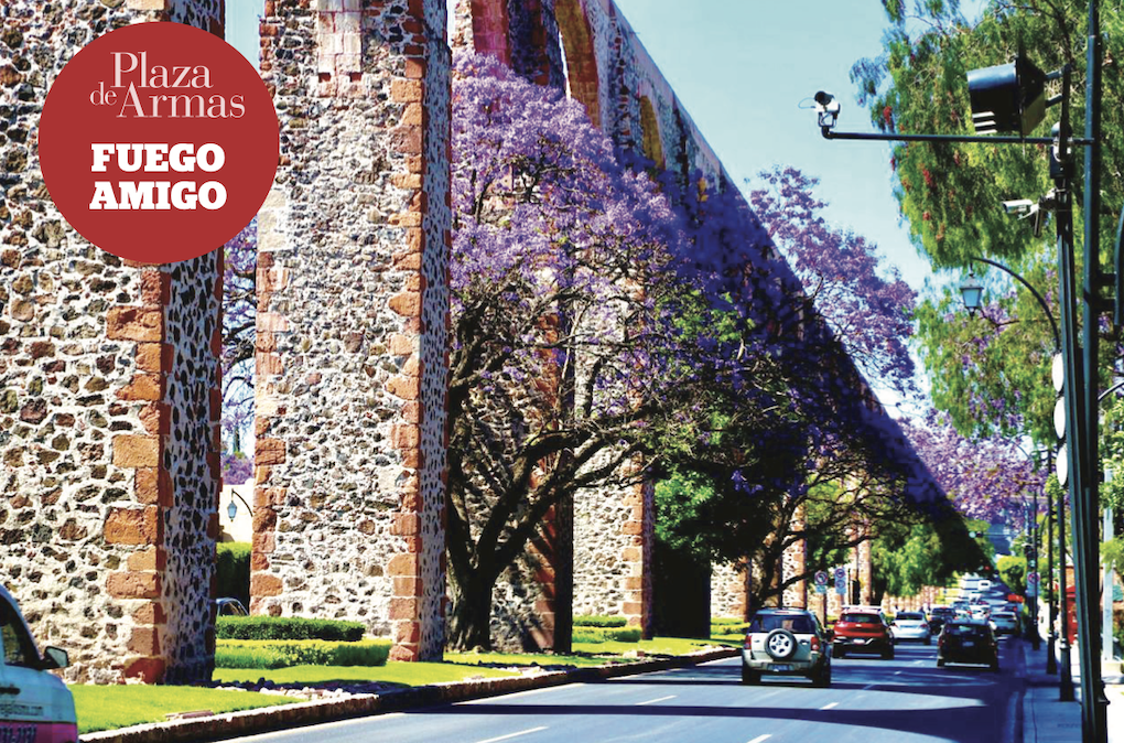 LA BENDITA PRIMAVERA.El color lavanda de las gloriosas jacarandas queretanas hace juego con la cantera rosa del casi tricentenario Acueducto, nuestro principal monumento.