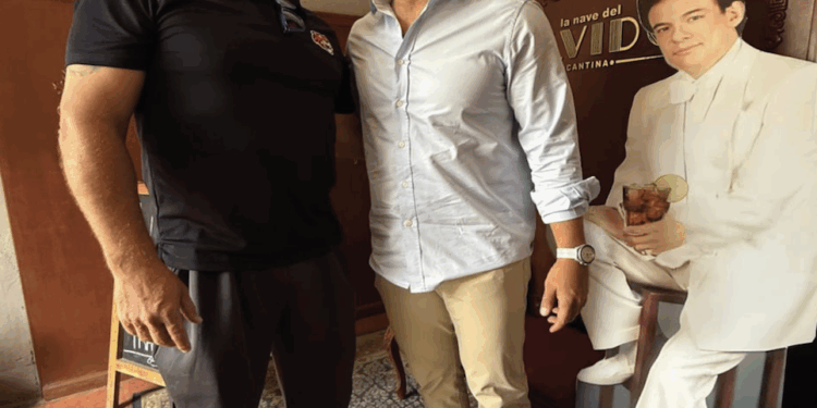 LA LEYENDA DEL BEIS: Gustavo Karim García Aguayo, célebre jardinero sonorense que jugó en Los Dodgers de Los Ángeles y los Yankees de Nueva York, entre otros equipos de la Gran Carpa y actual manager de Los Tigres de la Liga Mexicana, tuvo un grato encuentro el viernes pasado con el presidente municipal de Querétaro, Felifer Macías, al lado de una imagen clásica de José José en La Nave del Olvido, del Centro Histórico. ¡Puro big leaguer!