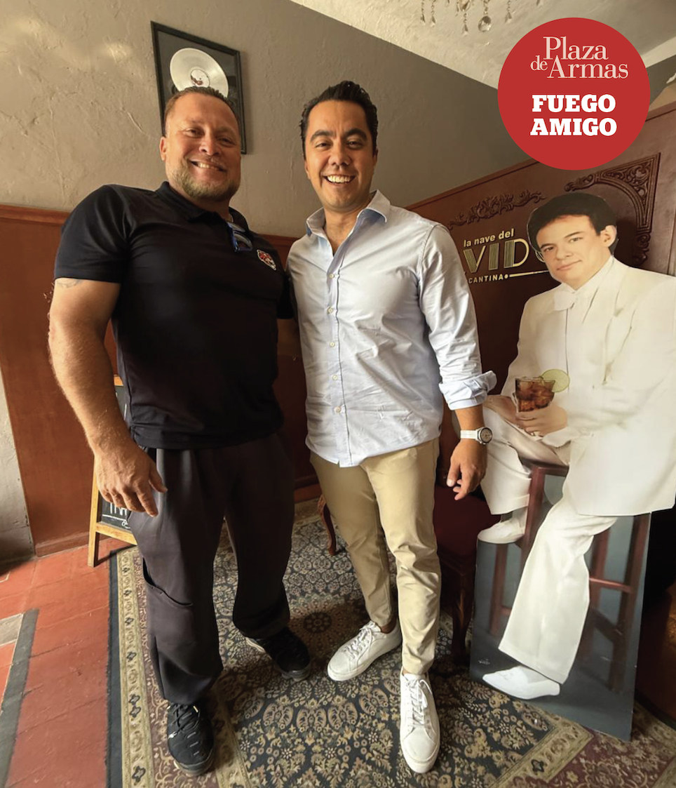 LA LEYENDA DEL BEIS: Gustavo Karim García Aguayo, célebre jardinero sonorense que jugó en Los Dodgers de Los Ángeles y los Yankees de Nueva York, entre otros equipos de la Gran Carpa y actual manager de Los Tigres de la Liga Mexicana, tuvo un grato encuentro el viernes pasado con el presidente municipal de Querétaro, Felifer Macías, al lado de una imagen clásica de José José en La Nave del Olvido, del Centro Histórico. ¡Puro big leaguer!