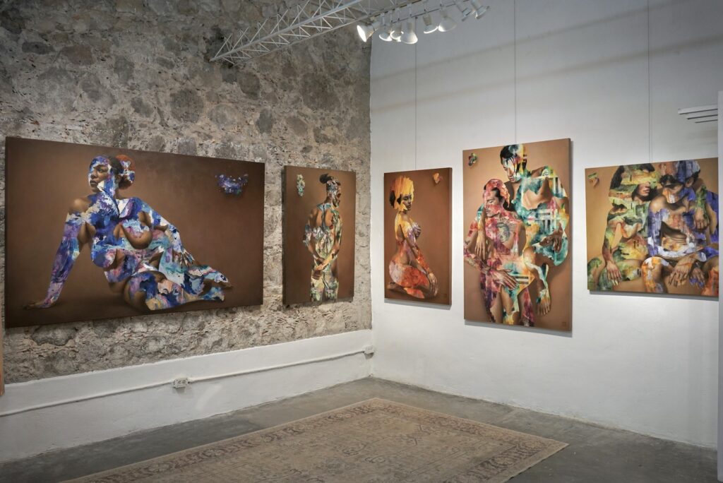 A su estilo lo llama esencialismo, no por tendencia, sino por convicción. Porque lo esencial está más allá de la piel. En sus cuadros, el realismo es solo la puerta: lo que importa es esa explosión de color —dorados, azules, destellos como de otra vida— que envuelve a cada persona. Esos colores no están encima: están adentro. Son su mapa emocional, sus cicatrices, sus dones, sus duelos, sus victorias silenciosas. Es lo que vibra detrás de lo que vemos.