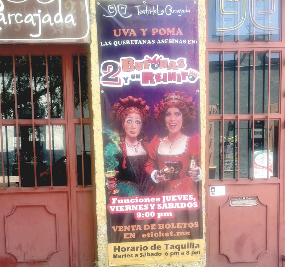 Después de la exitosa temporada de la Tremenda Corte, el teatrito La Carcajada ofrece este viernes y sábado, a las nueve de la noche, la obra Dos bufonas y un reinito, con Uva y Poma, las queretanas asesinas.