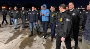 En el primero de los videos, Maduro aparece esposado y rodeado de fuerzas federales estadounidenses a su llegada a la Base de la Guardia Nacional Aérea de Stewart, vestido con una sudadera en color claro.
