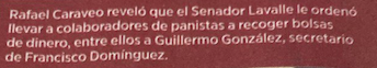 Publica hoy el periódico Reforma declaraciones de Rafael Caraveo, quien junto a Guillermo Gutiérrez Badillo recibió las maletas con sobornos millonarios de Lozoya. Asegura que parte del dinero lo llevó “El Chespirito” al departamento de su jefe, el entonces senador Francisco Domínguez Servién, ubicado en el desarrollo inmobiliario y comercial, Reforma 222 de la Ciudad de México.