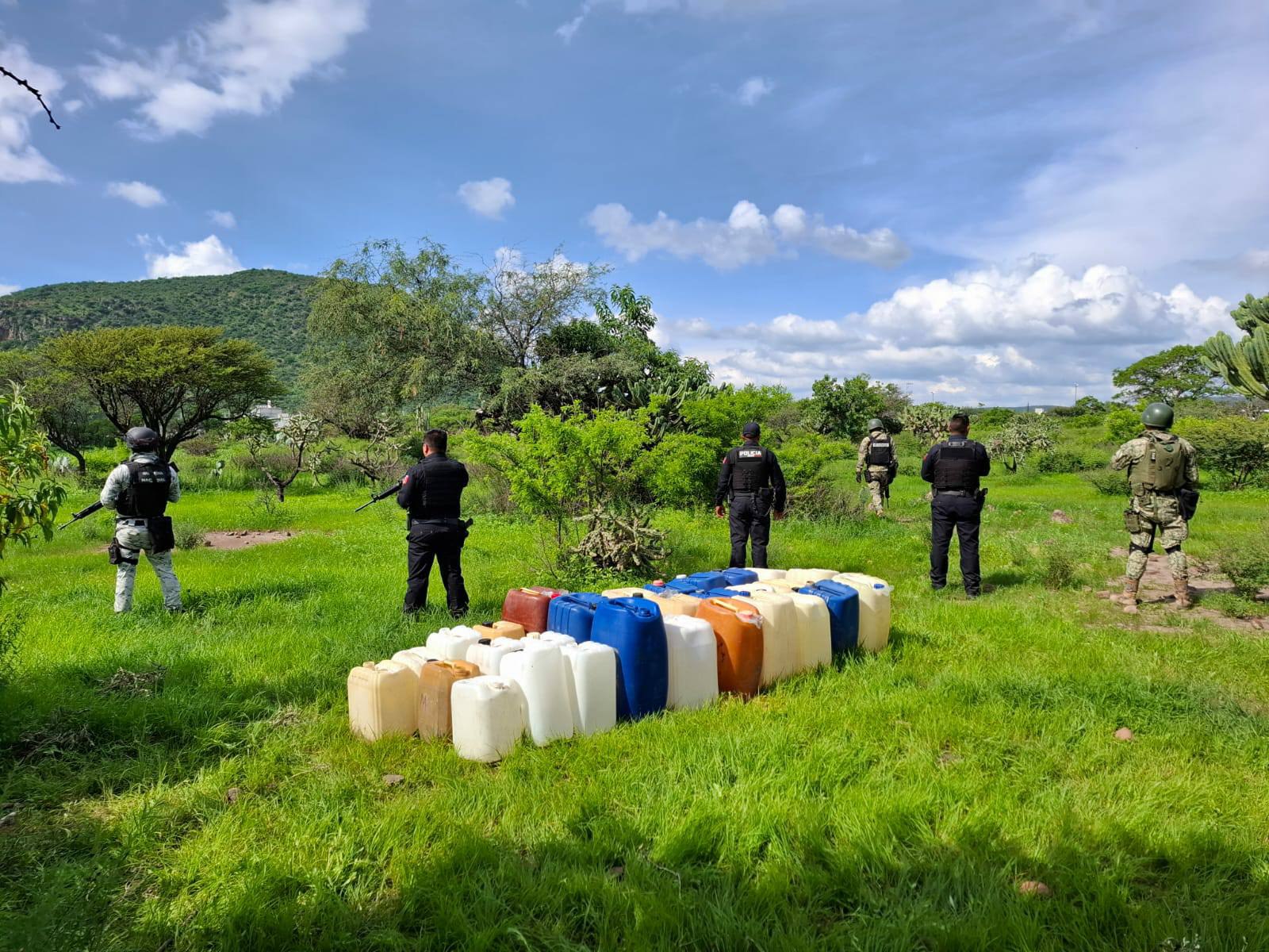 La autoridad sanjuanense reportó que se contó con el apoyo de la Secretaría de la Defensa Nacional (Sedena), institución que procedió con la destrucción de la manguera, mientras que los elementos de Seguridad Pública Municipal aseguraron los recipientes encontrados en el lugar.