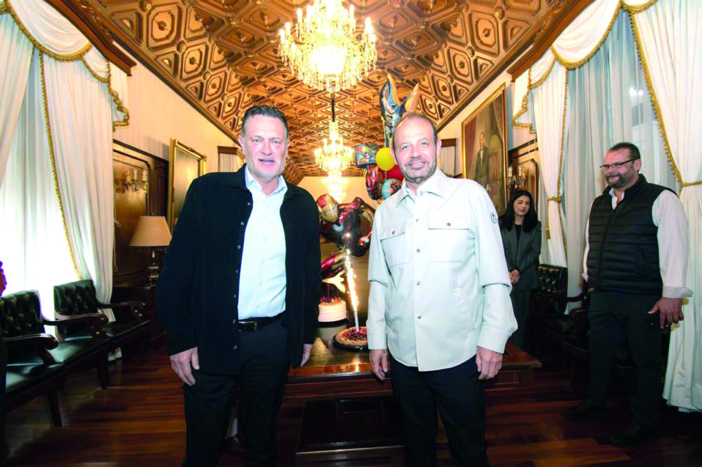 EL GOBERNADOR MAURICIO KURI celebró el cumpleaños del jefe del gabinete estatal Rogelio Vega Vázquez Mellado, su brazo derecho.