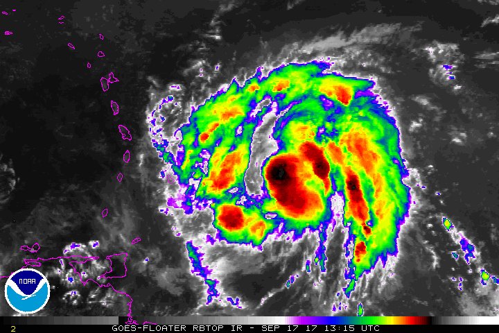 María, que presenta vientos máximos sostenidos de 120 kilómetros por hora, se dirige hacia las Antillas Menores y Puerto Rico con una velocidad de traslación de 24 kilómetros por hora .