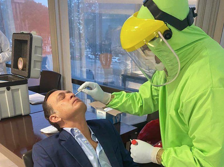 PRUEBA DE COVID Mauricio Kuri González, coordinador de la bancada del PAN en la Cámara Alta, se sometió -como todos los senadores- al examen de rigor, luego del fallecimiento de uno de los legisladores de Morena que había asistido a la sesión anterior. Foto: Senado