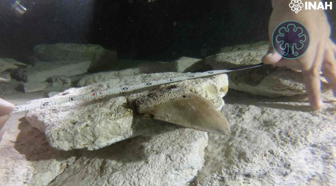 Dentro del cenote Maravilla, localizado en Puerto Morelos, Quintana Roo, a 28 metros de profundidad, en un contexto subacuático donde solo puede acceder personal especializado, el buzo de cuevas inundadas Juan Cardona descubrió, en 2019, un par de dientes de tiburón Otodus (Megaselachus) megalodón, el mayor depredador acuático de la prehistoria.
