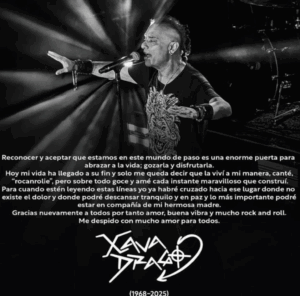 Por su parte, el cantante dejó un último mensaje para sus fans. Agradeció el amor, la buena vibra y el rock and roll compartido a lo largo de su trayectoria.