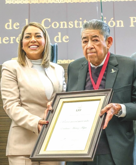 Emiliano Muñoz recibió la medalla y dirigió un mensaje a los diputados. “Los tiempos han cambiado en la sociedad y también en la política. Deseo a los integrantes de esta honorable Legislatura que su trabajo sea para que apoyen a que nos dejen un Querétaro con muchos desarrollos, con economía, salud y educación para que nuestros hijos y los hijos de nuestros hijos vivan mejor que nosotros”.