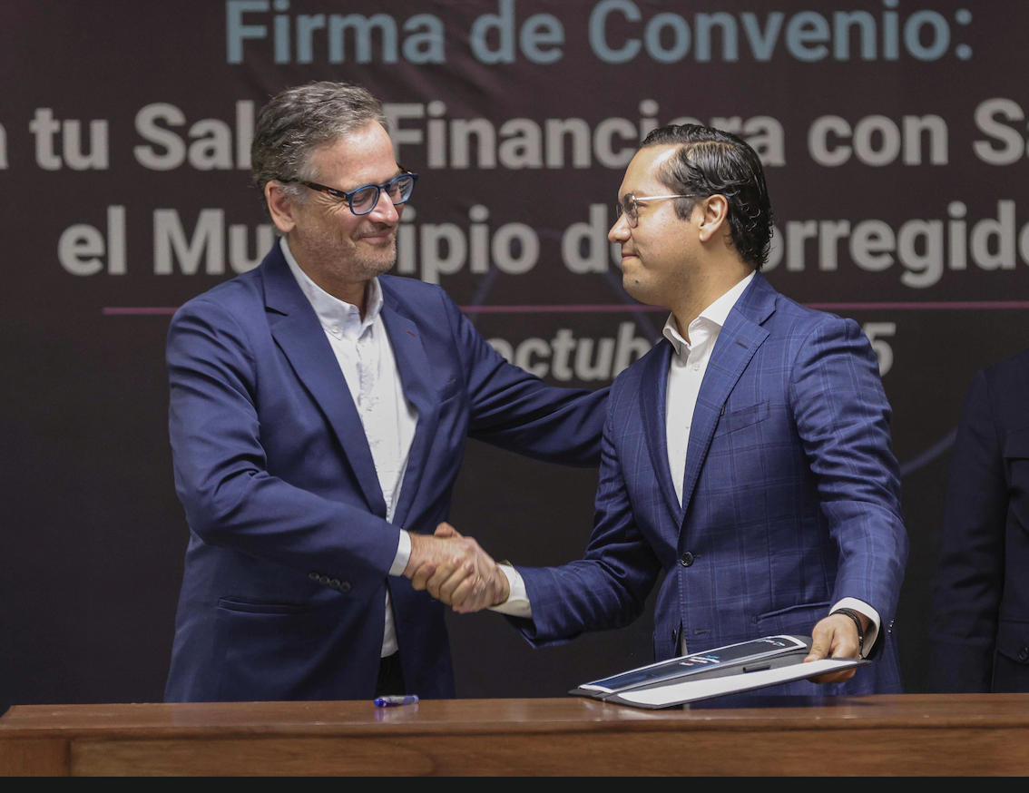 El presidente municipal de Corregidora, Chepe Guerrero y el director ejecutivo de distribución y regionalización de banco Santander México, Antonio Basagoiti, firmaron un convenio para la entrega de mil becas “Salud Financiera” para universitarios, esta iniciativa promueve una mejor administración del dinero, el ahorro y el uso responsable del crédito.