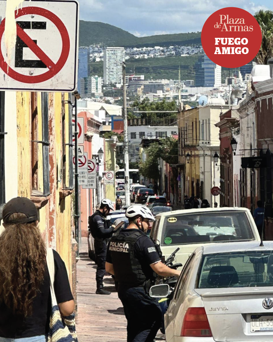 POLICÍAS MUNICIPALES EN ACCIÓN. Agentes capitalinos levantan infracciones en calles del Centro Histórico, especialmente en la muy angosta de Pasteur, en donde hay numerosas láminas de no estacionar que conductores queretanos y no queretanos ignoran olímpicamente. Ni modo, ya se la saben.