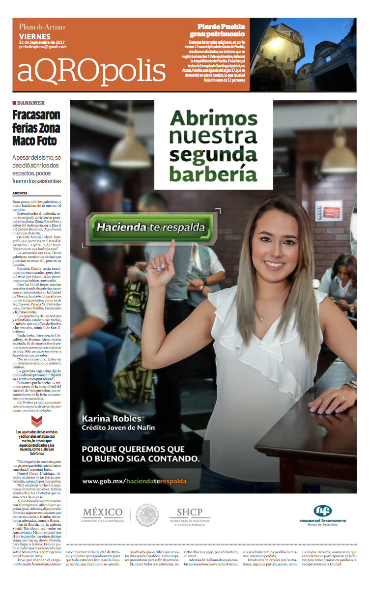 Portadas de nuestra edición hoy Viernes 22 de Septiembre de 2017