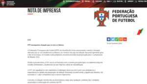 El mensaje de la Federación Portuguesa agrega que seguirán de cerca los acontecimientos en México.