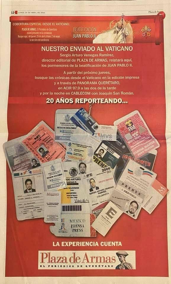 Conocido en el gremio como “El Armero”, Sergio Arturo Venegas Ramírez fue una figura clave del periodismo en Querétaro y México, desem-peñándose hasta sus últimos días como director editorial del periódico Plaza de Armas. El reconocimiento ofrece los datos más destacados del periodista queretano fallecido en su cumpleaños 55.