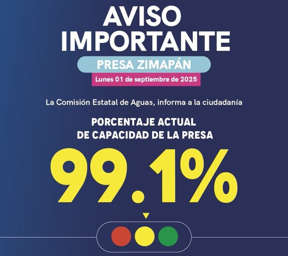 La presa de Zimapán está a un 99.1% de su capacidad, de acuerdo con el último reporte (lunes) de la Comisión Estatal de Aguas (CEA), por lo que siguen a la expectativa para anunciar a la población sobre las acciones de desfogue.