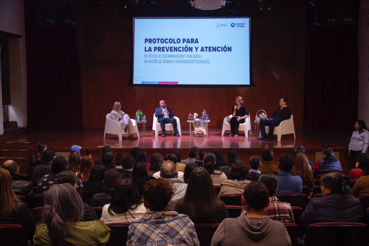 La secretaria de Cultura del estado, Ana Paola López Birlain, presentó el Protocolo para la Prevención y Atención de Actos de Discriminación y Violencia en Razón de Género y Diversidades Sexuales de la dependencia, intrumento que tiene la finalidad de garantizar entornos laborales y culturales libres de discriminación y violencia, con enfoque de derechos humanos, igualdad sustantiva y no discriminación.