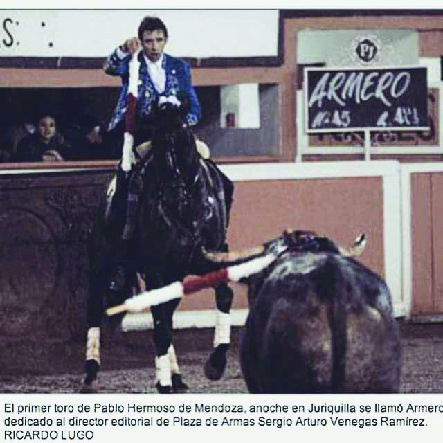 Por cierto, nunca olvidaremos que en una de las grandes tardes de Provincia Juriquilla el rejoneador Pablo Hermoso de Mendoza lidió un burel que llevó por nombre “Armero”, dedicado cariñosamente a nuestro director editorial, Sergio Arturo Venegas Ramírez, que ya estará allá arriba con El Pollo y su hermano Juan Germán hablando de toros.