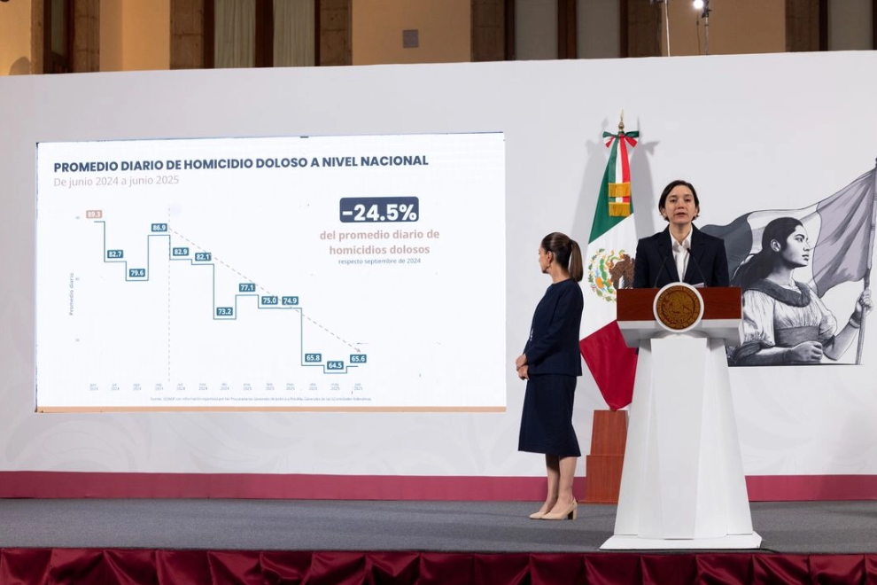 “Se aprecia una tendencia sostenida a la baja en los homicidios dolosos, particularmente desde el inicio de la actual administración. Con el cierre de junio de 2025, les informamos que este mes concluyó con un promedio mensual de 65.6 homicidios diarios”