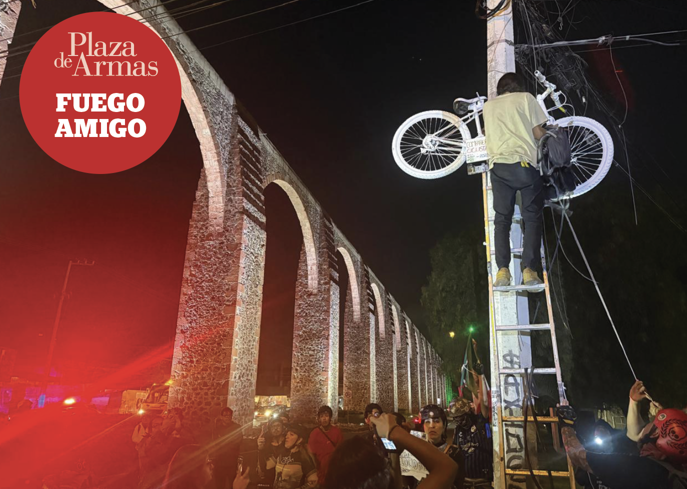 PROTESTA DE CICLISTAS EN LOS ARCOS y colocación de una bicicleta blanca en memoria de Daniel Villarreal Rodríguez su compañero atropellado y muerto el finde semana pasado al arrollarlo un camión del servició de transporte público. La agrupación Saca la Bici leyó un pronunciamiento para exigir atención a la problemática que enfrentan. “Ni una bici blanca más” corearon, recordando que ya casi llegan al medio centenar. Urge atenderlos.
