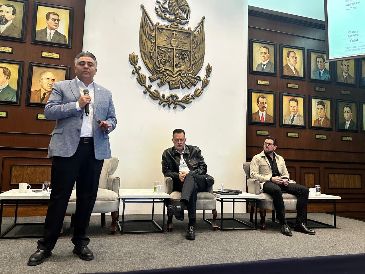 Presenta el Secretario de Finanzas del Estado, Gustavo Leal Maya el paquete presupuestal para el ejercicio 2026 en donde se proyecta una bolsa de 64 mil 617 millones de pesos, lo que implicaría un aumento de 2 mil 400 millones de pesos respecto al actual periodo.