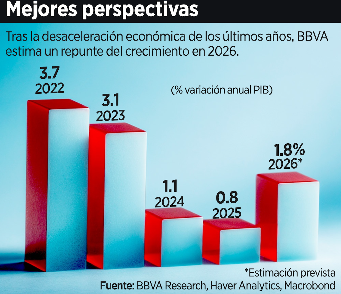 La economía mexicana crecería 1.8 por ciento en 2026, impulsada por una recuperación gradual de la inversión, la resiliencia del consumo y el impacto económico de la Copa Mundial de la FIFA 2026, estimó el economista en jefe de BBVA México, Carlos Serrano Herrera.