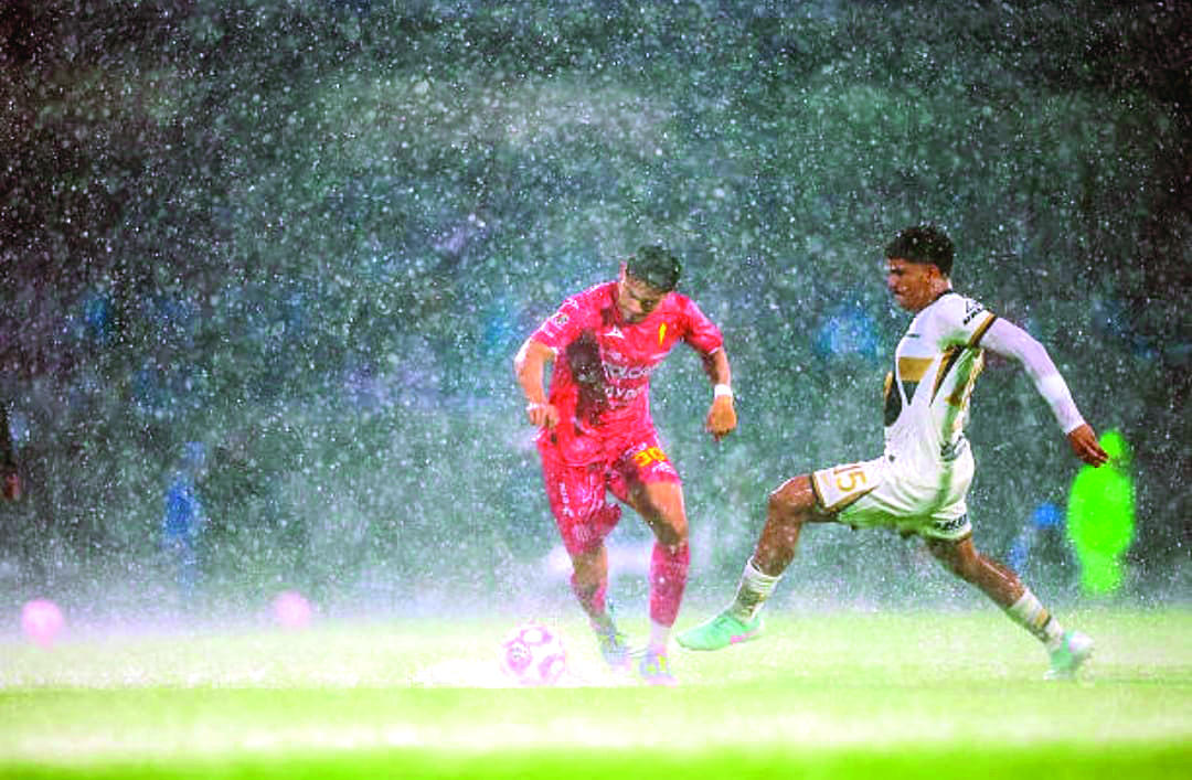 En el primer tiempo, Pumas tuvo al menos dos ocasiones muy claras para anotar, incluyendo un mano a mano de Jorge Ruvalcaba, pero los aficionados se quedaron con las ganas del grito de gol en medio de una lluvia torrencial que provocó charcos en la cancha y por la que el inicio del segundo tiempo se demoró más de la cuenta.