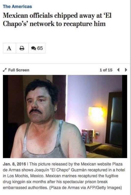 Esta noticia fue el acta de confirmación de PLAZA DE ARMAS, pero sin duda la exclusiva de mayor relevancia vendría hasta el viernes 8 de enero de 2016, con las fotos y videos de la recaptura de Joaquín “El Chapo” Guzmán, recogidos de nuestra web -con el crédito correspondiente- por los gigantes del periodismo internacional: The New York Times, The Washington Post, The Wall Street Journal, Time, Paris Match, ABC News, Daily Mail, El Mundo, O Globo, además de las principales televisoras nacionales.