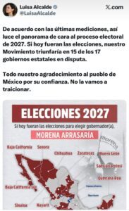 Luisa María Alcalde, presidenta de Morena destacó la fuerza de su partido a nivel nacional, pero aún permanecen algunos bastiones panistas en un mapa que se pinta de guinda a nivel nacional.