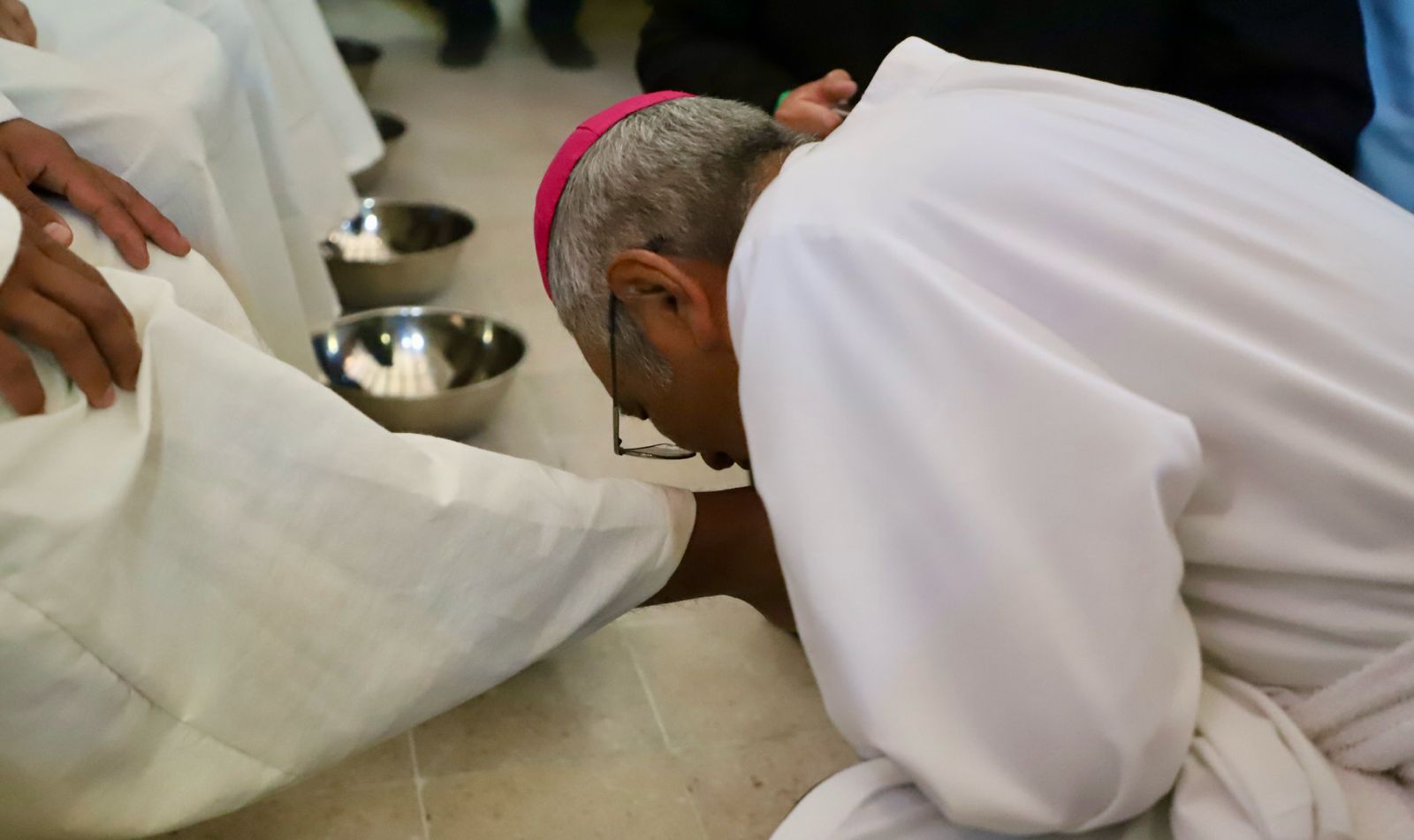 Durante la ceremonia, el obispo replicó el gesto atribuido a Jesucristo al lavar los pies de sus discípulos, como parte del rito que simboliza el servicio y la humildad dentro de la tradición católica.