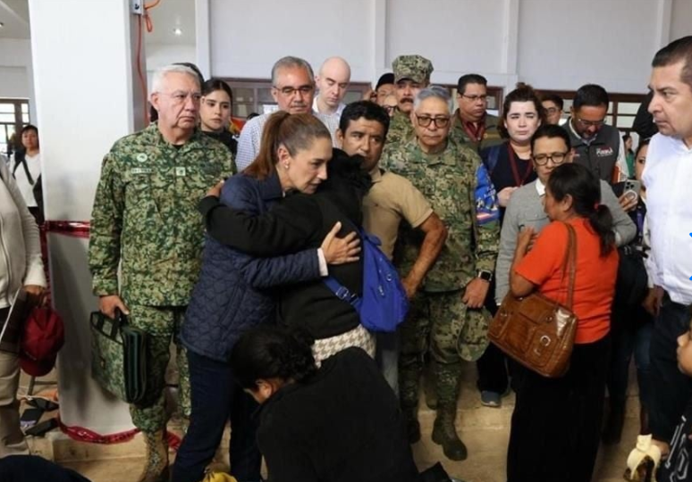 En un mensaje previo a su salida, Sheinbaum informó que desde el viernes se mantiene instalado el Comité de Protección Civil y que las labores de emergencia se centran en abrir caminos, restablecer servicios y atender a la población damnificada.