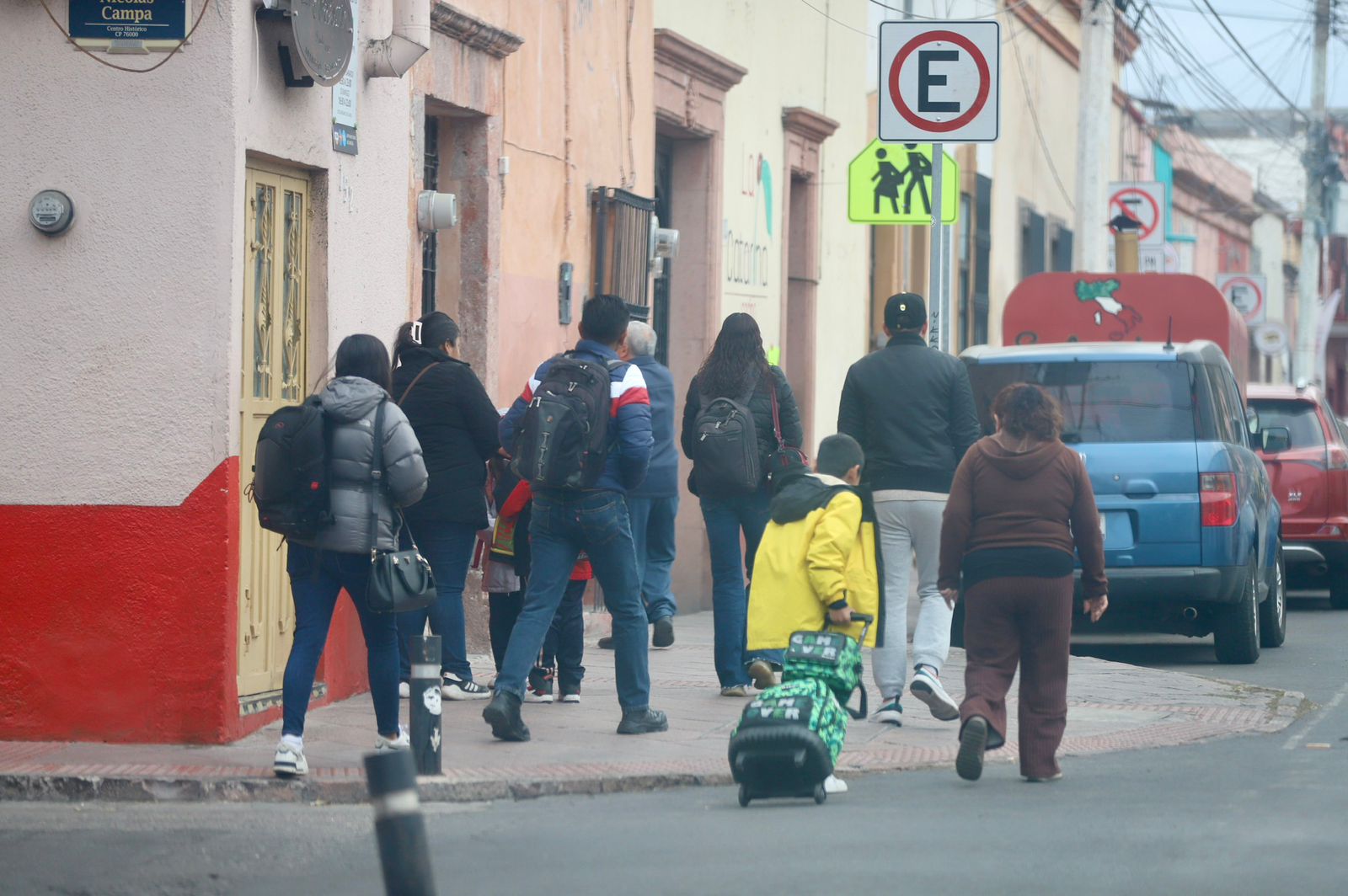La calle de Hidalgo en el Centro Histórico de Querétaro se llena de mochilas de colores —una muy peculiar de Frozen— y otra más pequeña con una lonchera que golpea las piernas al andar. Algunas niñas visten falda y calcetas largas, con tal de desafiar la adversidad climática. Una jovencita carga un oso de peluche apretado contra el pecho, sabe que este será su fiel acompañante en su invernal regreso a clases. El viento juega con las melenas de los niños. Las mamás se inclinan para abrazar más fuerte, para absorber el frío de sus criaturas antes de que crucen las puertas de la primaria.