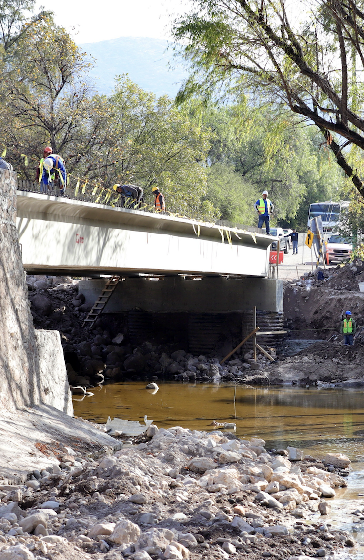 Actualmente la obra presenta un 82 por ciento de avance y se proyecta concluirla a finales de diciembre. La funcionaria indicó que el puente tendrá una longitud total de 170 metros, incluyendo rampas de acceso, así como un gálibo de cuatro metros para permitir un flujo adecuado del agua en avenidas extraordinarias. “Al puente anterior lo que le pasó es que el agua chocó sobre el puente porque no tenía el gálibo suficiente”, explicó.