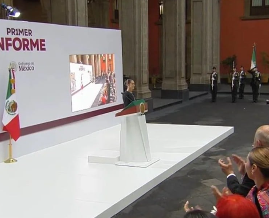 Desde el Patio de Honor, acompañada de unos 300 invitados, la Mandataria federal presenta un balance de los logros y pendientes de sus primeros 11 meses al frente de la Administración Pública Federal.