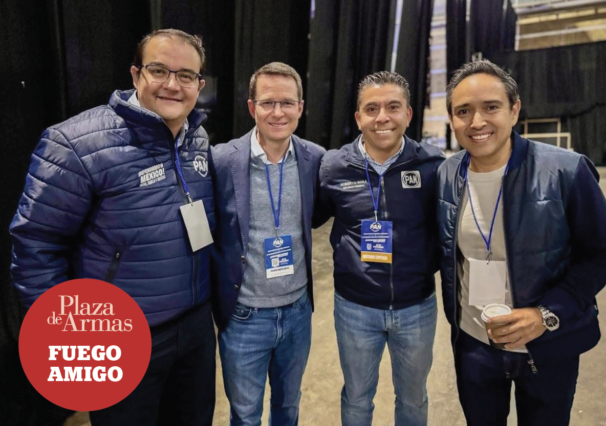 RUMBO Al 2026. Consejeros electos del PAN: Memo Vega, Ricardo Anaya y Toño Rangel, acompañados de Roberto Sosa, en la asamblea nacional.