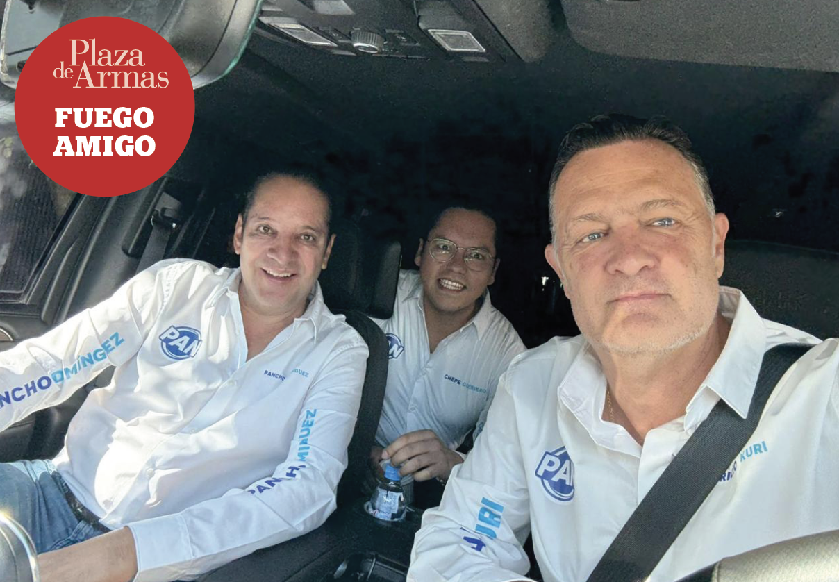 RUMBO AL RELANZAMIENTO DEL PAN el gobernador Mauricio Kuri González y su antecesor Francisco Domínguez Servién, acompañados del presidente municipal de Corregidora, Chepe Guerrero, único queretano miembro del comité ejecutivo nacional. Unidad, fue la línea.