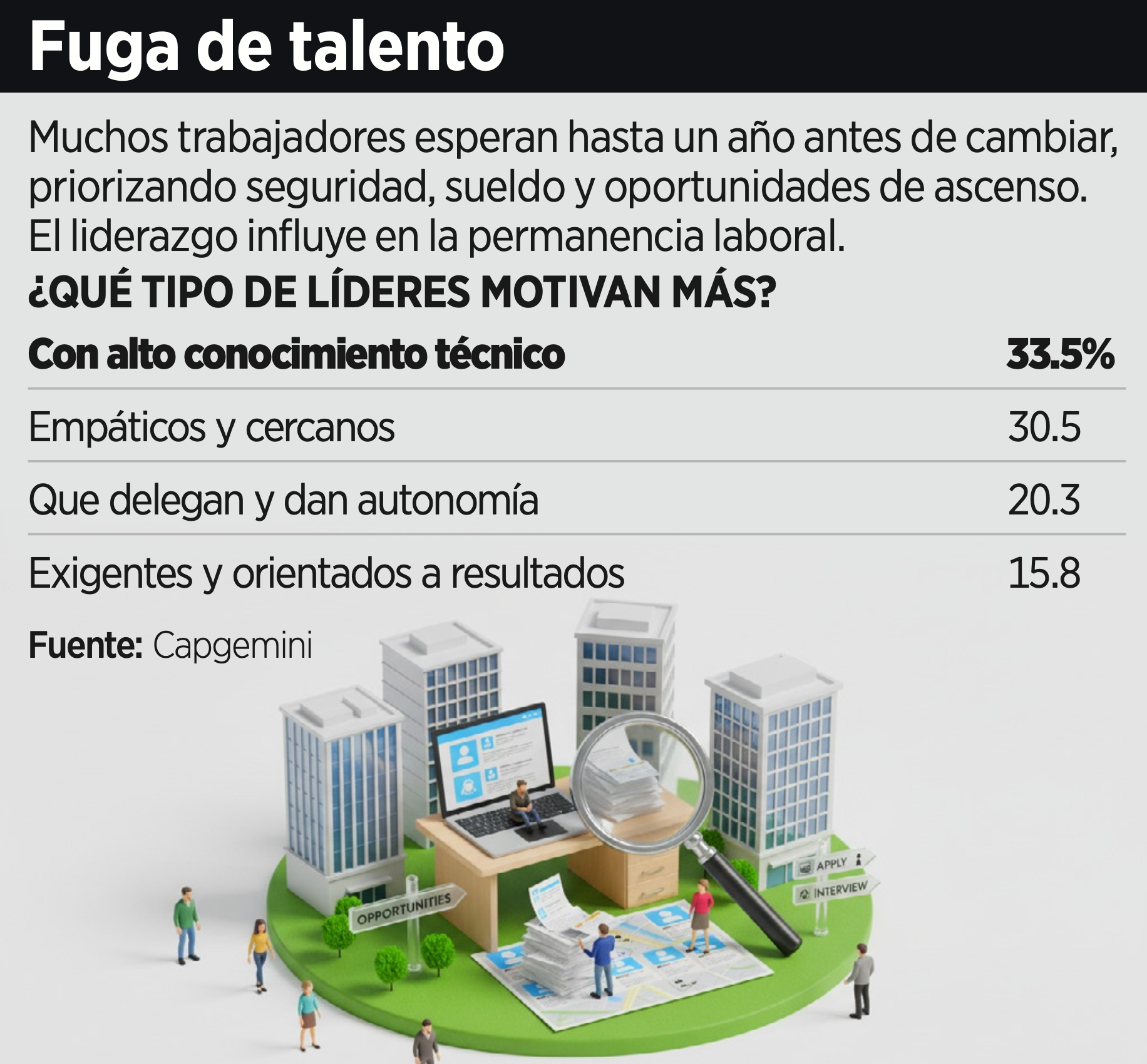 Las principales razones por las que los colaboradores cambian de empleo son, en primer lugar, el salario; en segundo, la falta de crecimiento profesional, y en tercer sitio, un mal ambiente laboral, reveló una encuesta de Capgemini.