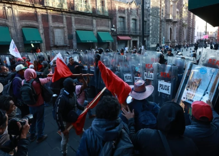 Con patrullas bloqueó todos los accesos vehiculares al primer cuadro del Centro Histórico y colocó vallas metálicas alrededor del inmueble en donde a las 6:00 horas se reunió el Gabinete de Seguridad y a las 7:30 la Presidenta Claudia Sheinbaum dará su conferencia de prensa matutina.